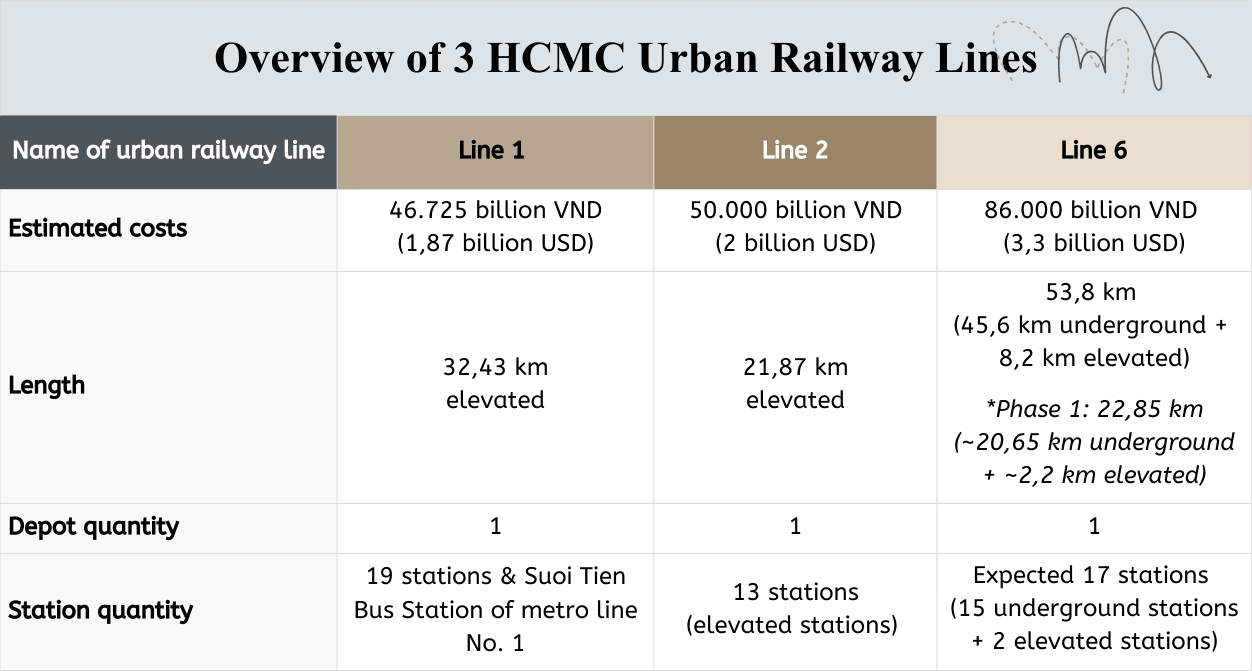Overview information about UR Lines 1, 2, and 6 is as the following table below: